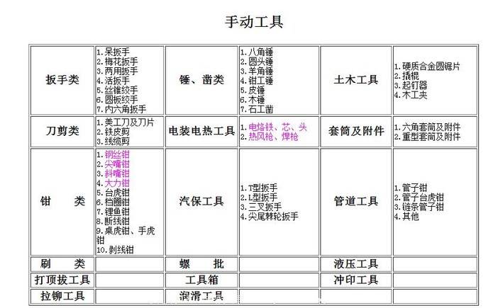 欧工机电产品分类