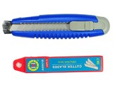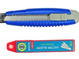 1.材质:不锈钢内芯,ABS刀身,配高碳钢质刀片。2.刀片硬度:HRC61-62。3.注意:使用刀具是请戴防护手套。远离儿童。 附一盒刀片(10片装)