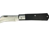 弯刃,整体不锈钢,黒木手柄,手感好,可折叠。刃部硬度:50-52