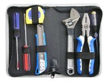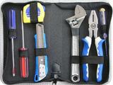 内含工具包括:十字螺丝批5*100、一字螺丝批5*100、美工刀一支、2m*13mm钢卷尺一支、8"活动扳手一支、7"美式电工钳一支、测电笔一支、帆布包一个。