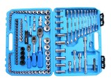 内含工具包括:10个6.3mm公制短套筒:4 、5、6、7、8、9、10、11、12、13mm;10个6.3mm英制长套筒:5/32"、3/16"、7/32"、1/4"、9/32"、5/16"、11/32"、3/8"、7/16"、1/2";4个6.3mm公制长套筒:8、9、10、12mm;11个10mm公制短套筒:9、10、11、12、13、14、15、16、17、18、19mm;9个10mm英制短套筒:3/8"、7/16"、1/2"、9/16"、5/8"、11/16"、3/4"、13/16"、7/8";4个10mm公制长套筒:13、14、15、17mm;8个10mm星型短套筒:E8、E10、E11、E12、E14、E16、E18、E20;7个12.5mm公制短套筒:20、21、22、24、27、30、32mm;4个12.5mm英制短套筒:15/16"、1"、1-1/16"、1/1/4";4个12.5mm气动短套筒:17、19、21、23mm;17个10mm批头套筒:PH-#1、PH-#2、PZ-#1、PZ-#2、HW-3、HW-4、HW-5、HW-6、FD-5.5、FD-6.5、TX-20中孔、TX-30中孔、TX-40中孔、TX-45中孔、TX-50中孔、TX-55中孔、TX-60中孔;10个6.3mm批头:PH-#1、PH-#2、PH-#3、TX-10、TX-15、TX-20、TX-25、TX-27、TX-30、TX-40;1支6.3mm接杆:2";2支10mm接杆:3"、6";2支12.5mm接杆:5"、10";1个6.3mm万向接头;1个10mm万向接头;1个12.5mm万向接头;1支6.3mm旋柄;1支6.3mm棘轮扳手;1支10mm棘轮扳手;1支12.5mm棘轮扳手;1个6.3mm批头接头;2支10mm火星套筒:16、21mm;11支两用扳手:8、9、10、11、12、13、14、16、17、18、19mm。