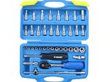 内含工具包括:14个6.3mm公制短套筒:3.5、4.0 、4.5、5.0、5.5、6.0、7.0、8.0、9.0、10.0、11.0、12.0、13.0、14.0mm;18个6.3mm批头:FD-4、FD-5.5、FD-6.5、PH-#1、PH-#2、PZ-#1、PZ-#2、HW-3、HW-4、HW-5、HW-6、HW-8、TX-10、TX-15、TX-20、TX-25、TX-30、TX-40;2个6.3mm接杆:2"、4";1支6.3mm棘轮扳手;1支6.3mm滑行杆;一个6.3mm万向接头;1支6.3mm旋具手柄。