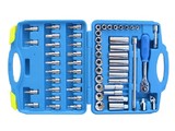 内含工具包括:18个10mm短套筒:6、7、8、9、10、11、12、13、14、15、16、17、18、19、20、21、22、24mm;9个10mm长套筒:8、10、11、12、13、14、15、17、19mm;24个6.3mm批头:FD-4、FD-5.5、FD-7、PH-#1、PH-#2、PZ-#1、PZ-#2、PZ-#3、HW-3、HW-4、HW-5、HW-6、HW-7、HW-8、HW-10、TX-10、TX-15、TX-20、TX-25、TX-30、TX-40、TX-45、TX-50、TX-55;2支10mm接杆:3"、10";1个10mm万向接头;1支10mm棘轮扳手;1个火花塞套筒 16-21mm;1个1/2F*3/8M三用接头。