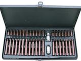 内含工具包括:7支六角短批头(H10*30L):H4、H5、H6、H7、H8、H10、H12;7支六角长批头(H10*75L):H4、H5、H6、H7、H8、H10、H12;5支梅花短批头(H10*30L):M5、M6、M8、M10、M12;5支梅花长批头(H10*75L):M5、M6、M8、M10、M12;7支星型短批头(H10*30L):T20、T25、T30、T40、T45、T50、T55;7支星型长批头(H10*75L):T20、T25、T30、T40、T45、T50、T55;1支3/8"DR.扣环;1支1/4"DR.扣环。