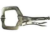 C型大力钳(固定式)/11"275mm B0038-R 1.钳口用铬钒钢整体锻造,韧性好;2.冲压钢板手柄,夹持物体不变形;3.热处理调节杆,易调整为最佳尺寸;4.最大开口90mm,有固定头,活动头两种型号。