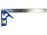 双面刻度,不锈钢尺面,可调节塑料手柄,附水泡。