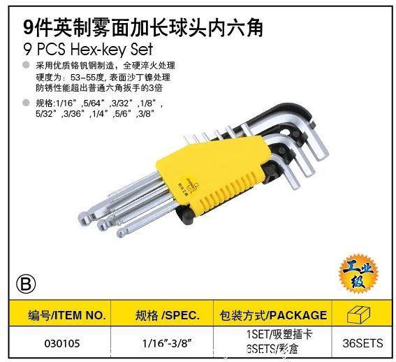 9件英制雾面加长球头内六角