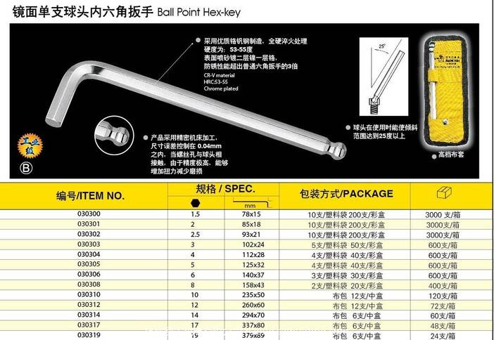 镜面单支球头内六角