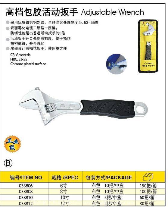 高档包胶活动扳手 6”