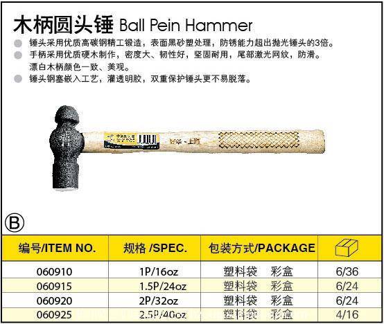 木柄圆头锤 1P/16OZ